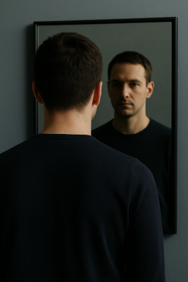 鏡に映った一瞬の影を、実際の動きより“幽霊かも”と解釈してしまいます。